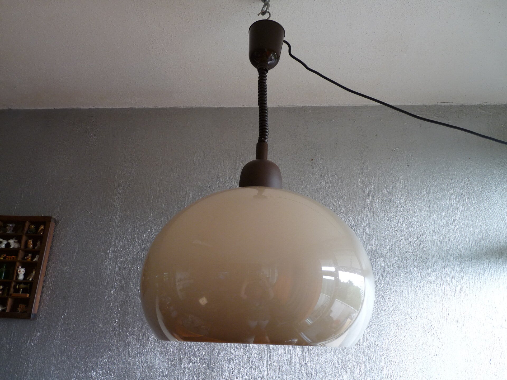 Mushroom beige/ bruin hanglamp, Dijkstra/ Vrieland?, space age era