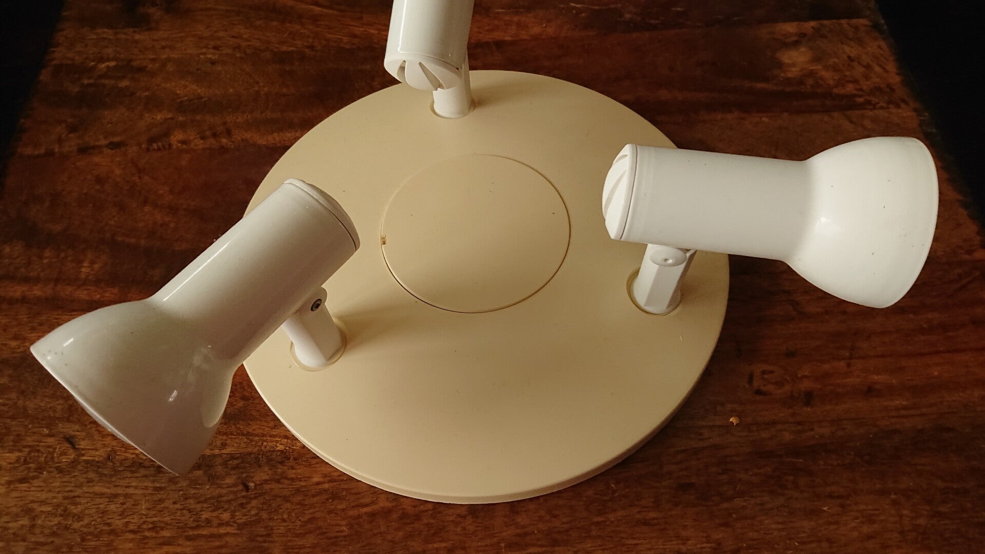 Metalen witte spotjes op kunstof crèmekleurige plat